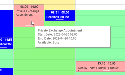 - Note: Private Exchange events, regardless of any user preferences, will display as “Private Exchange Appointment” and will not show location or title.