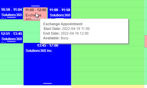 - Note: Tooltip will display when you hover over an event/appointment.