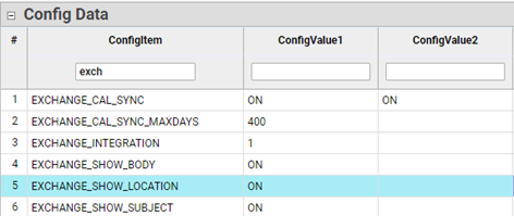 - EXCHANGE_INTEGRATION must have ConfigValue1 set to 1.